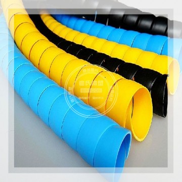 螺旋保護(hù)套為螺旋狀,具有很好的彈力、拉伸力,可以對液壓膠管、電線、電纜等內(nèi)部產(chǎn)品起到很好的束縛作用。目前國內(nèi)采用的原材料為聚丙烯(PP)、聚乙烯(PE)或尼龍(PA),使產(chǎn)品具有很好的耐磨作用。此外,螺旋保護(hù)套還具有良好的耐高低溫、耐油、抗紫外線、抗靜電、抗沖擊、抗拉伸等性能。