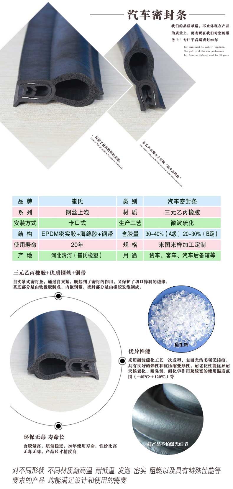 5 20年使用壽命,解決汽車密封條經(jīng)常更換的麻煩。
