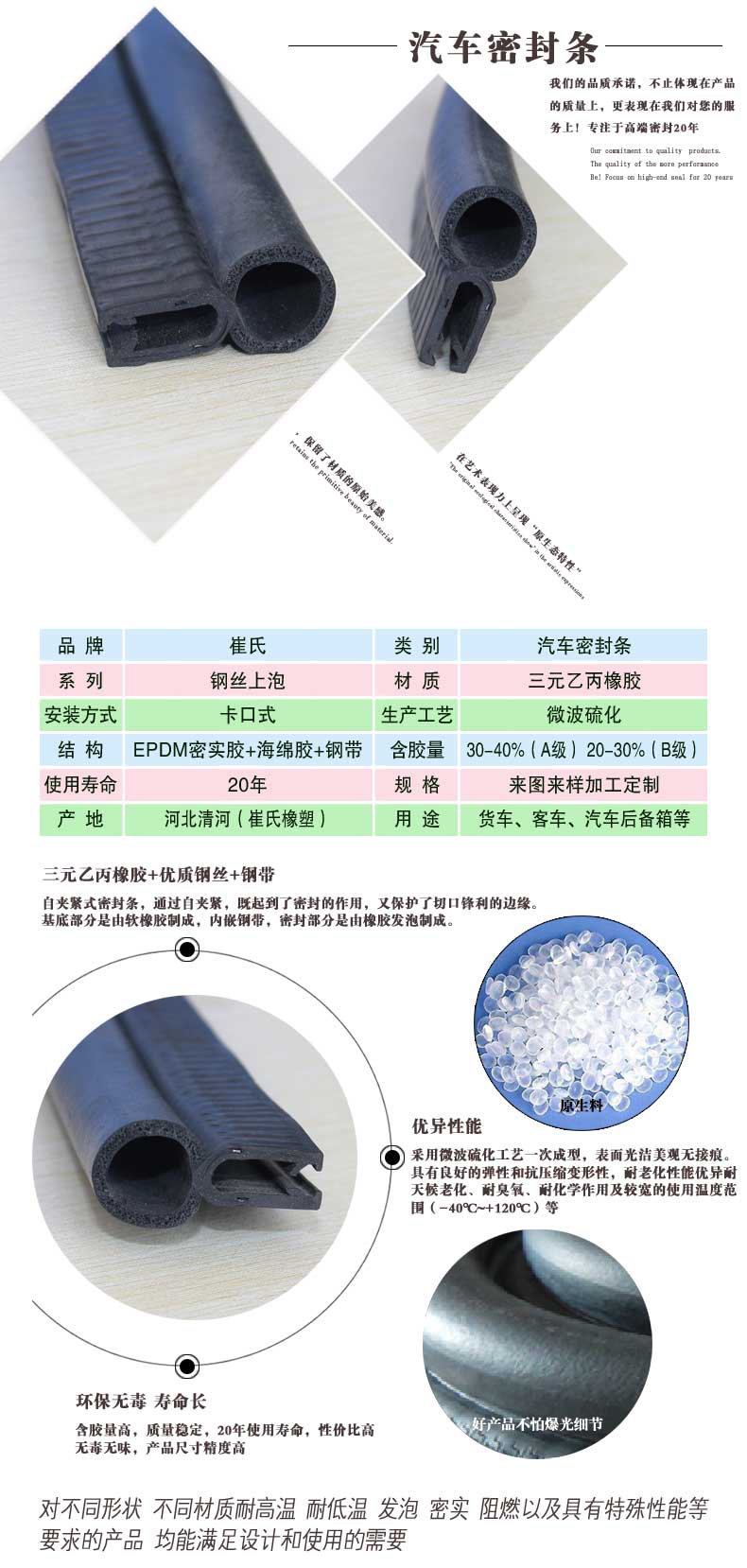 5 20年使用壽命,解決汽車(chē)密封條經(jīng)常更換的麻煩。